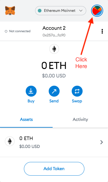 1) Click on the Account button. This will display a list of networks to which you're already connected: