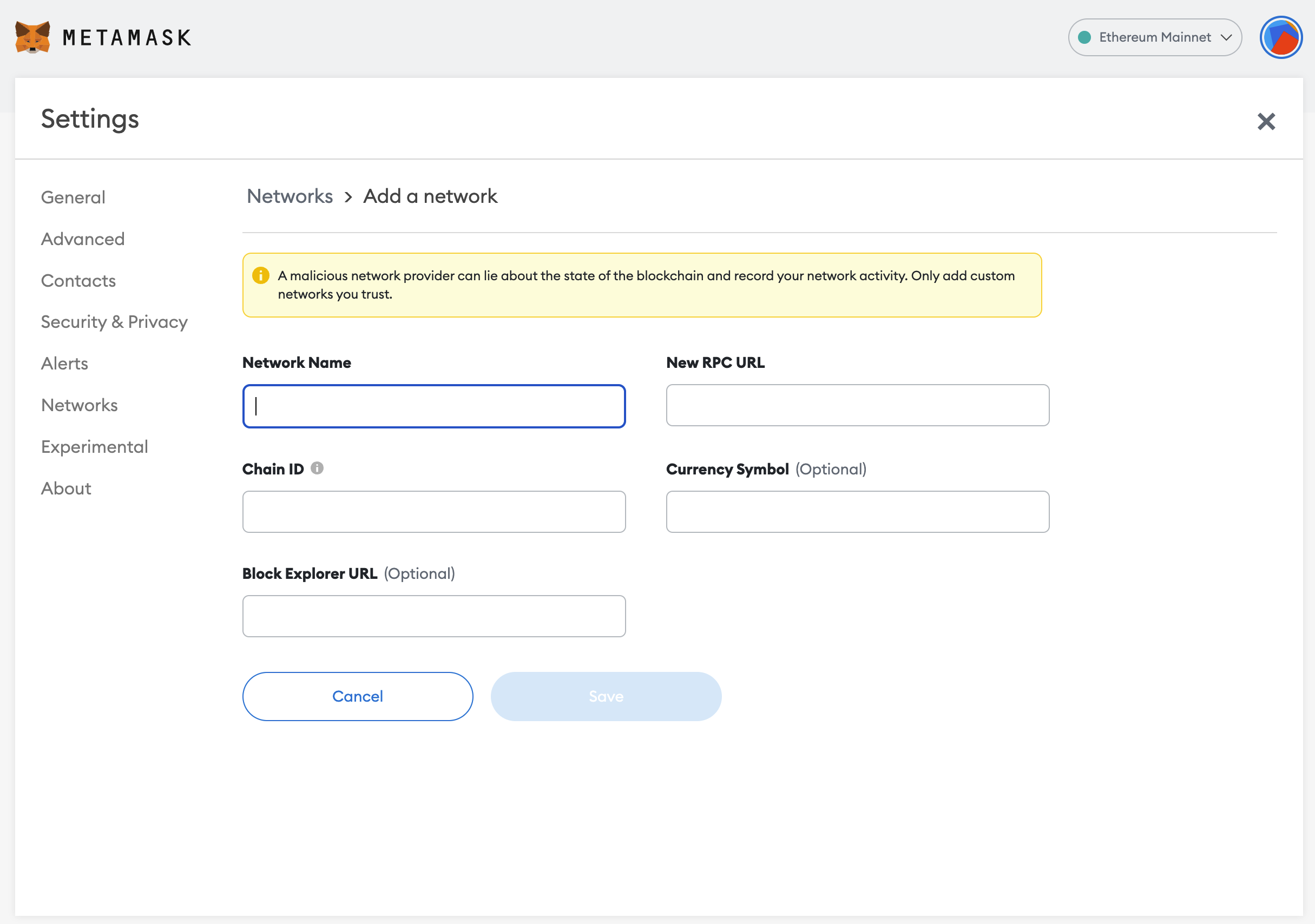 The initialism RPC stands for remote procedure call, a set of protocols that allow a client (such as MetaMask) to interact with a blockchain. Without going off on a significant technical tangent, adding network details using the process below allows MetaMask to connect to the chosen network, and, in turn, lets you interact with that network.
